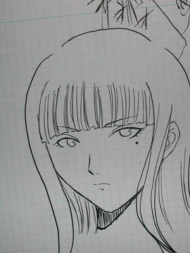 長い黒髪と切れ長の目、日本人形のような女性。陰気な雰囲気でなんというか、貞子?(←リング)