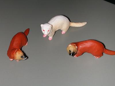 茶色い方は日本イタチなんだけど、白いのはフェレットなんだよな;