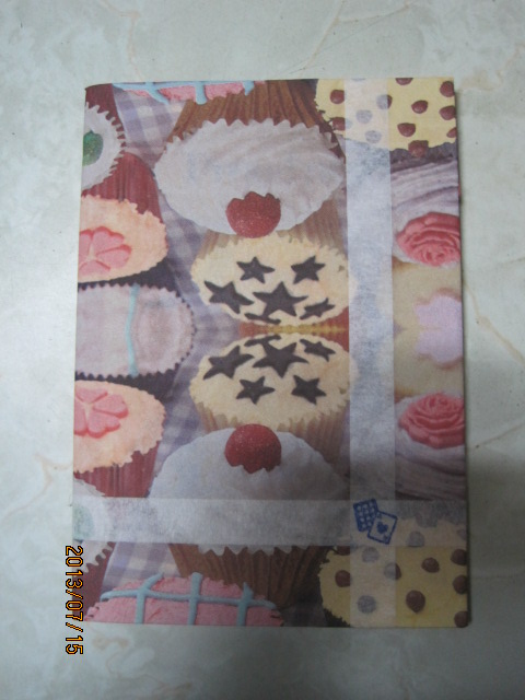 スティックのりを全面に塗って、ブックカバーのようにくるんだだけです。