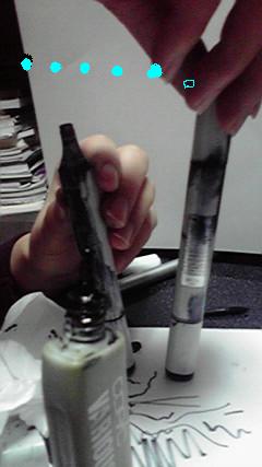 その後、一生懸命にドロドロの手でコピックを拭く君!