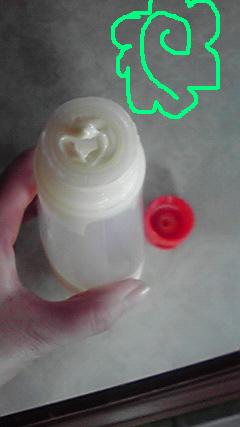 マヨマヨの土手は、細い口だと高さが足りなくて、決壊してしまうので、キャップをとった太口の方でニョロッと一周、土手作り☆